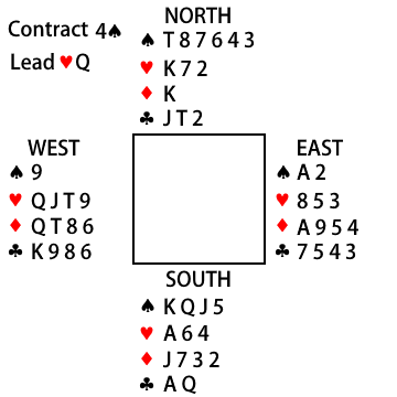 South is the declarer in 4♠. West leads the ♥Q. How would you play?